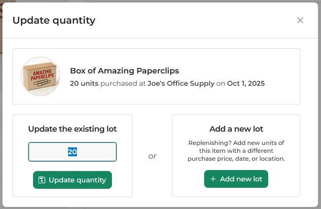 You can continue to add new lots from this page by clicking the green "Add new Lot" button. And now that there are multiple lots, whenever you click on the edit button next to Quantity Purchased, it will take you directly to this new page.