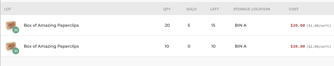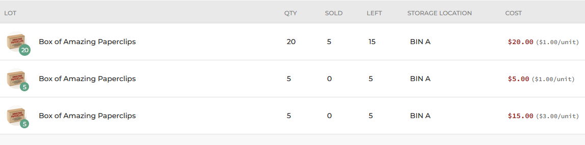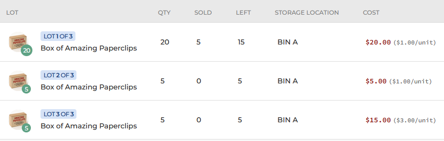 Continuing with the previous example, let's say that within those 5 sales in the larger lot, 3 of the items that sold actually cost me $2/unit instead of $1/unit. Here's what I would do: